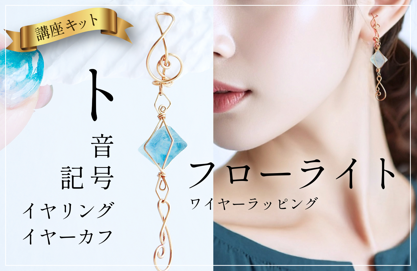 天使のさざれのレッスンの詳細です。それぞれの画像をクリックしていただくと、詳細がご覧頂けます。 新ワイヤーラッピング講座は天使の羽ワイヤーアート講座のご受講者さま限定です フローライトのワイヤーラッピング、ト音記号のイヤーカフ両方学べる材料付き動画講座。初めての方にもおすすめです。 ワイヤー1本で作るアイデア耳飾り、マスクイヤリング同じワイヤーで作るイヤーカフも同時に学べます めがね留め講座はリニューアルのため募集停止中です